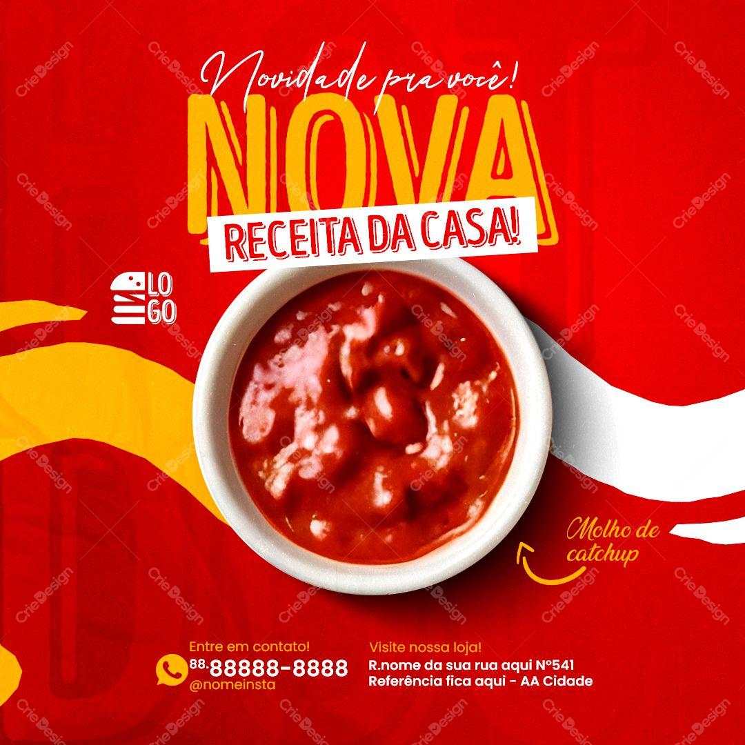 Nova Receita de Molho de Catchup Artesanal Social Media Lanchonete Psd Editável